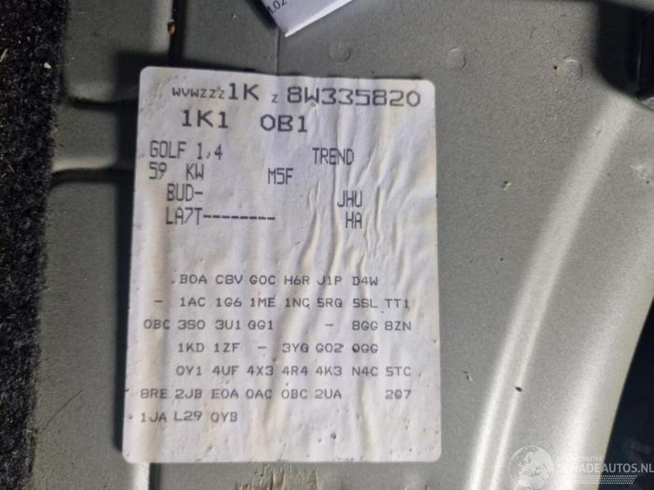 Model: GOLF Golf V (1K1), Hatchback, 2003 / 2010 1.4 16V