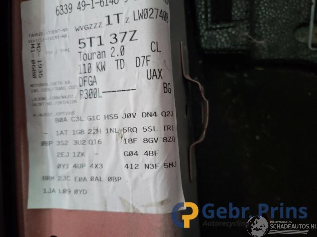 Model: TOURAN Touran (5T1), MPV, 2015 2.0 TDI 150