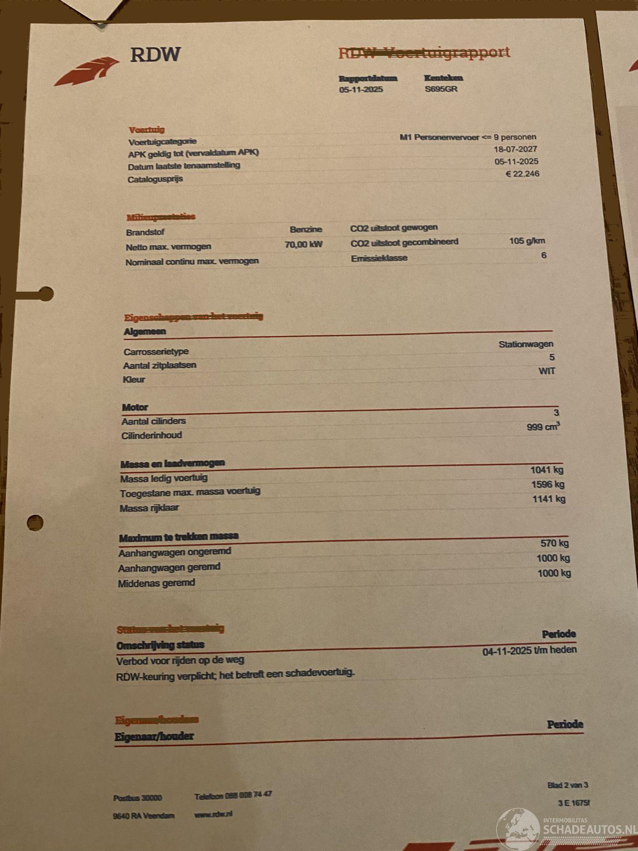 Er is eventueel een kleine Video van deze auto/schade via Whatsapp beschikbaar.