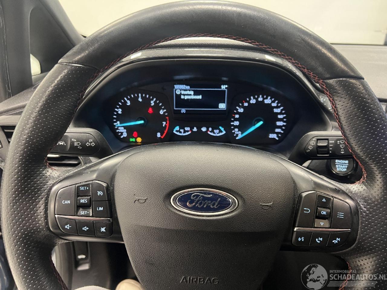 Vanaf 01.2021, voorruit verwarmb ge, navigatiesysteem, radio digitaal, ford sync 3, radiobediening stuur, mistlichten, a-lichten led, beeldscherm lcd 6.5, projectorschijnw led, vak in middenconsole, velgen 7 j x 17 alu, 3e hoofdsteun a, serie st-line, dakconsole, spoorassist aktief, parkeerhulp a, 998 cc 70 kw, versnellingsbak 6 v, sport-ophanging, radiatorroost aktief, bandendrukcontrole, airco automatisch, banden 205/45 r17..v, systeem "start&stop", 6 luidsprekers, uit-gasnorm euro 6.2, airbag voor hoofd, sidebag, 5-deurs, sportbumper v, bumper a sport, metallic 2 l, koelmiddel r1234yf, regensensor, sleutelloos startsys, ruitbed v/a elektr, binn-spieg d/n autom, buit-spieg elek/verw