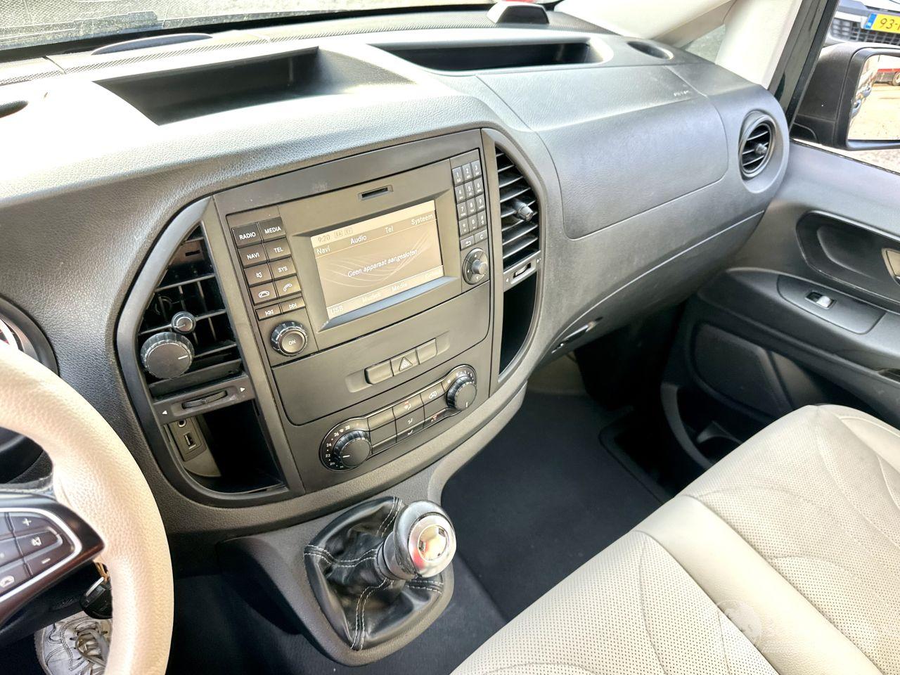 heeft een maximum vermogen van 84kW/(114PK) en een cilinderinhoud van 1598cc. Deze Mercedes-Benz Vito heeft een topsnelheid van 169 km per uur en bereikt vanuit stilstand de 100 in 14.4 seconden. Het verbruik van deze bus is gemiddeld 6.2 liter per 100 km en hij weegt 1866 kg. De APK is geldig tot 19-10-2026 en de wegenbelasting bedraagt gemiddeld € 174 euro per kwartaal (zakelijk gebruik)