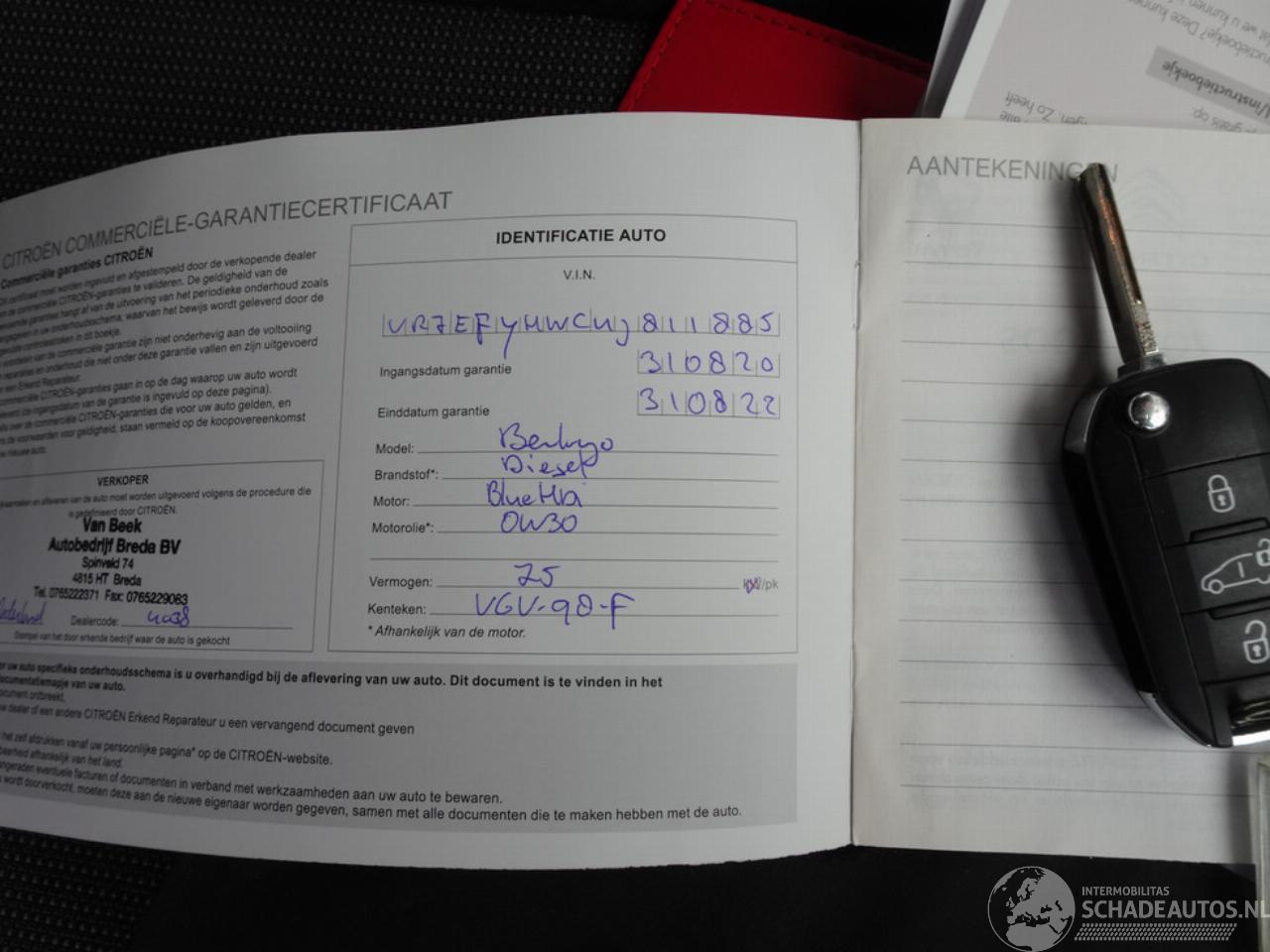 Modell: BERLINGO  1.5 BlueHDI Control Airco Schuifdeur LET OP MOTOR LOOPT NIET 100%