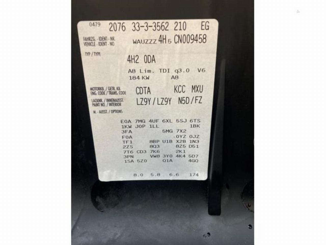 Número de chasis: WAUZZZ4H5CN0*****