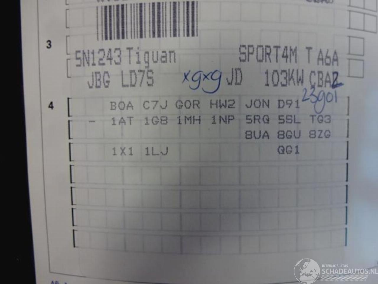 Modèle: TIGUAN Tiguan (5N1/2), SUV, 2007 / 2018 2.0 TDI 16V 4Motion