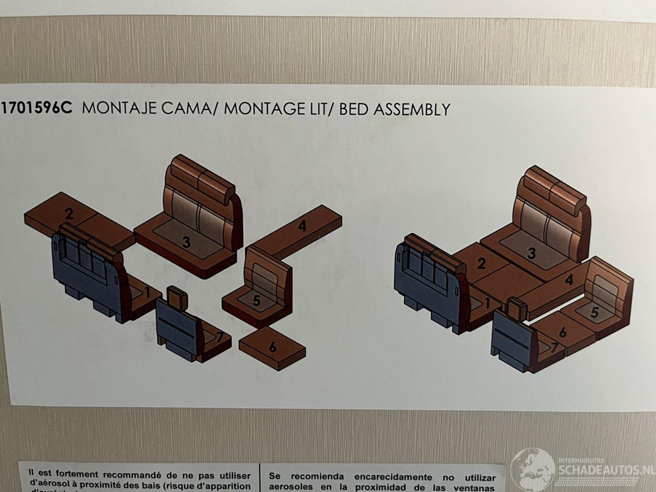 7 goedgekeurde zitplaatsen en 7 slaapplaatsen. Indeling: Voorzien van een ruim alkoofbed boven de cabine (155x200 cm) een stapelbed achterin (80x210 cm) en ombouwbare eetzitgroepen.