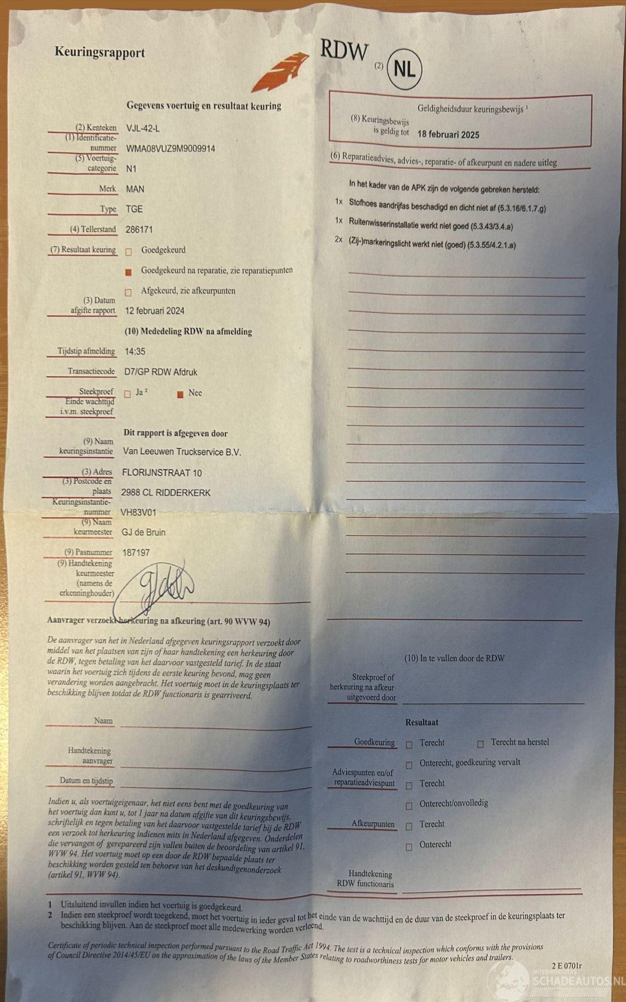 Controle téchnique approuvé de/à: 18-02-2025