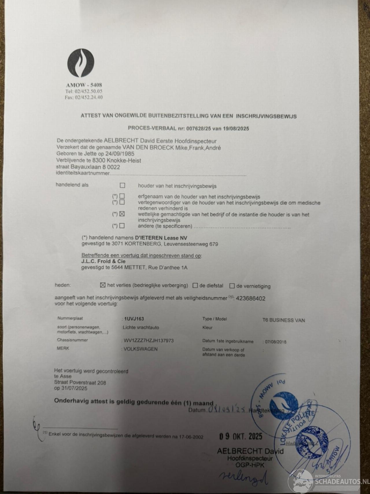 Numéro de chassîs: WV1ZZZ7HZJH13****