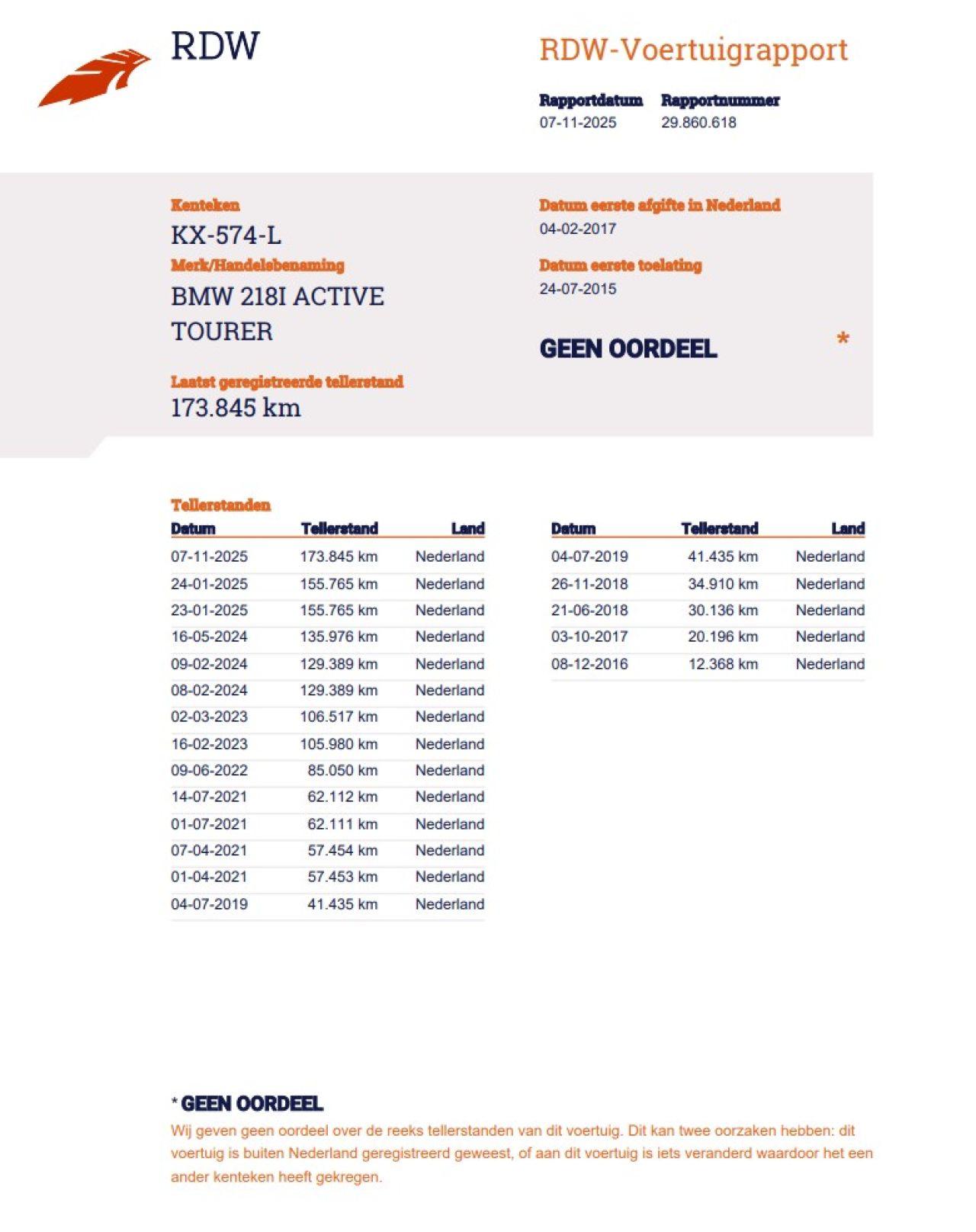 Indication du compteur: 173.846  KM