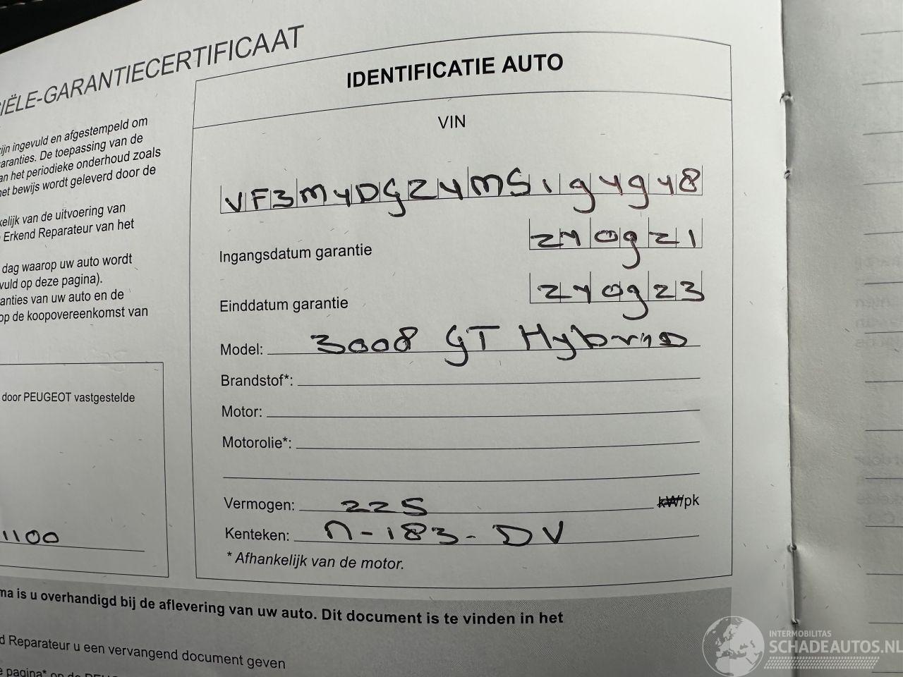Modèle: 3008  1.6 Hybrid 225 Aut + F1 GT-Line - Nap - 1e Eig - Virtual - Navi - Camera - Keyless - Front + Line + Side Assist