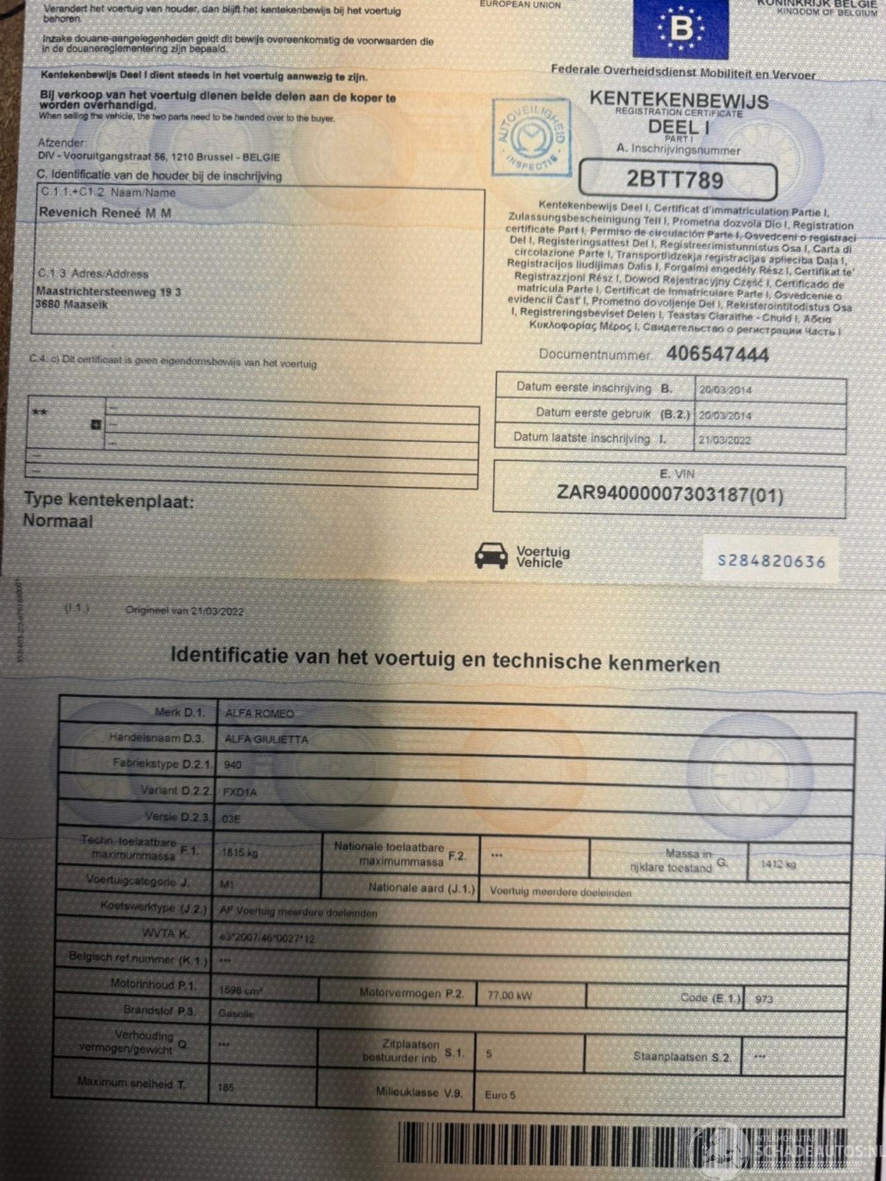 schade ALFA ROMEO ALFA ROMEO GIULIETTA € 1.900