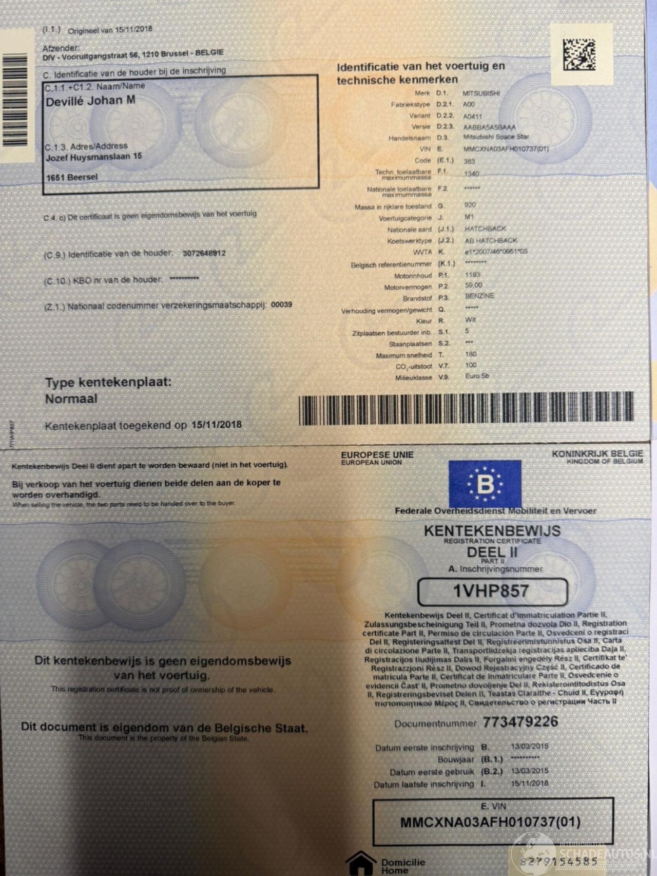 schade MITSUBISHI MITSUBISHI SPACE-STAR € 2.500