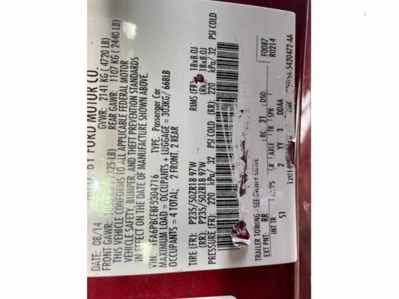 Numer nadwozia / vin: 1FA6P8CF8F53*****