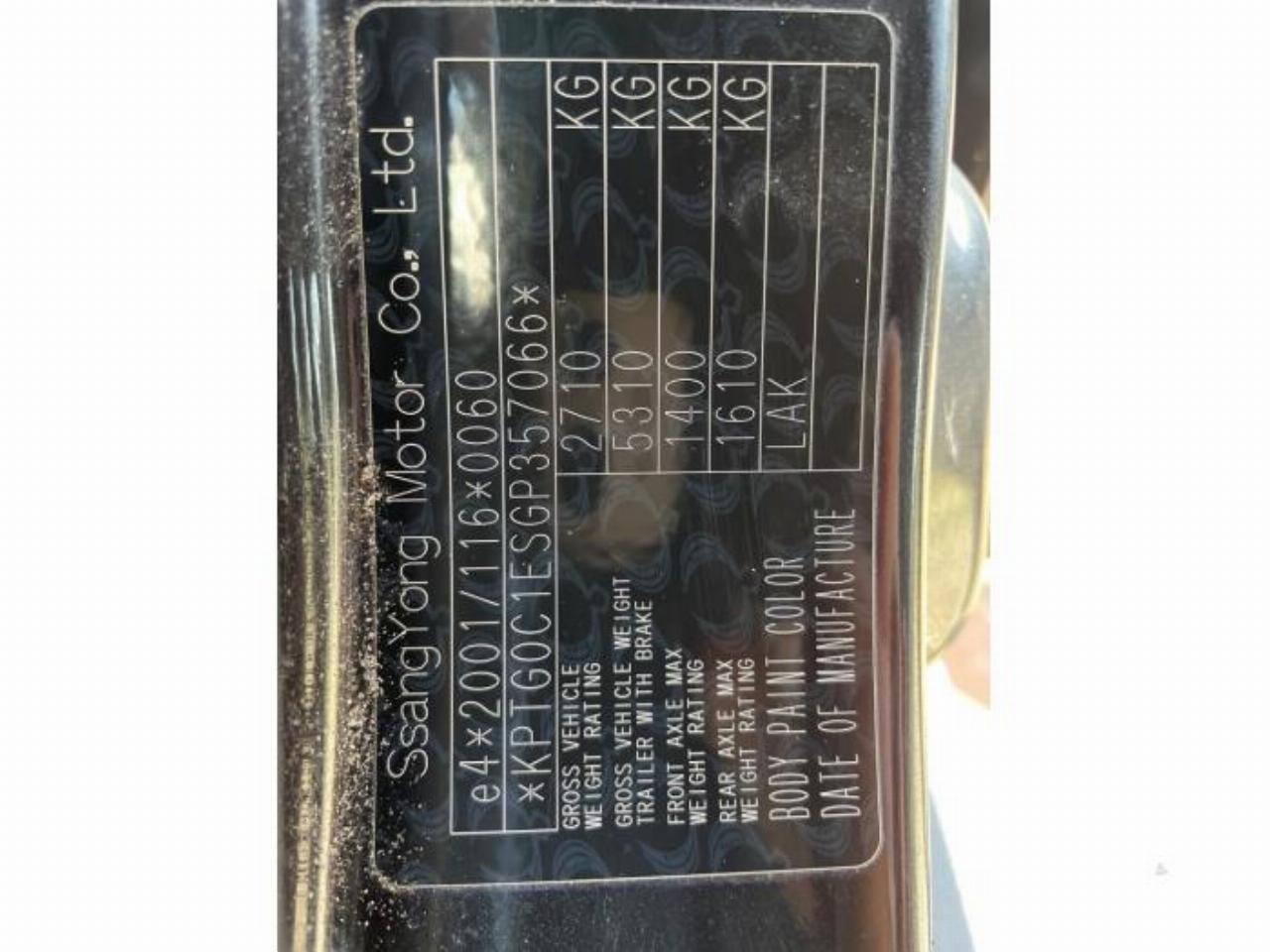 Numer nadwozia / vin: KPTG0C1ESGP3*****