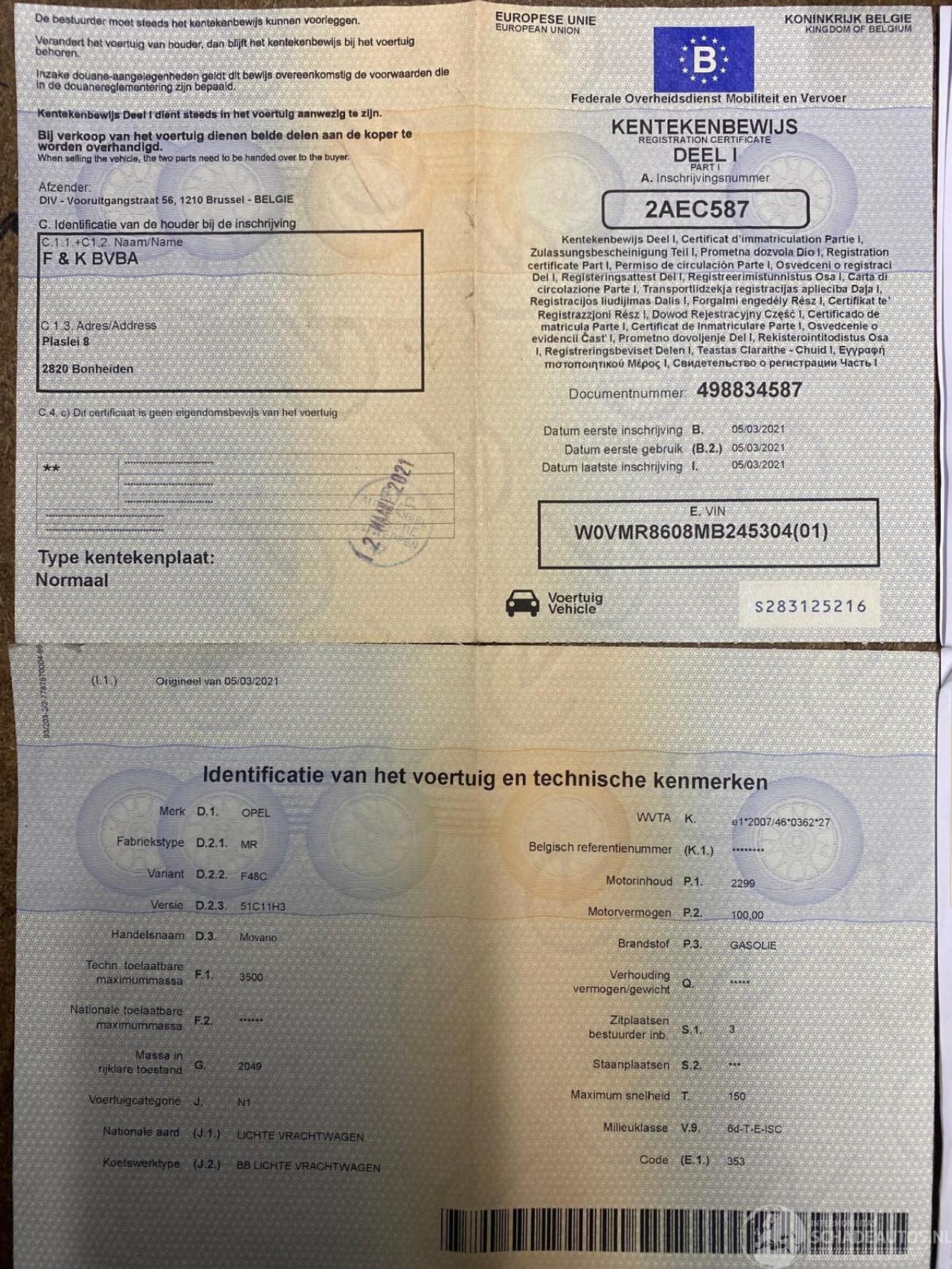 Reg. Certificate(I+II)=OK, C.O.C=OK, CarPass=OK