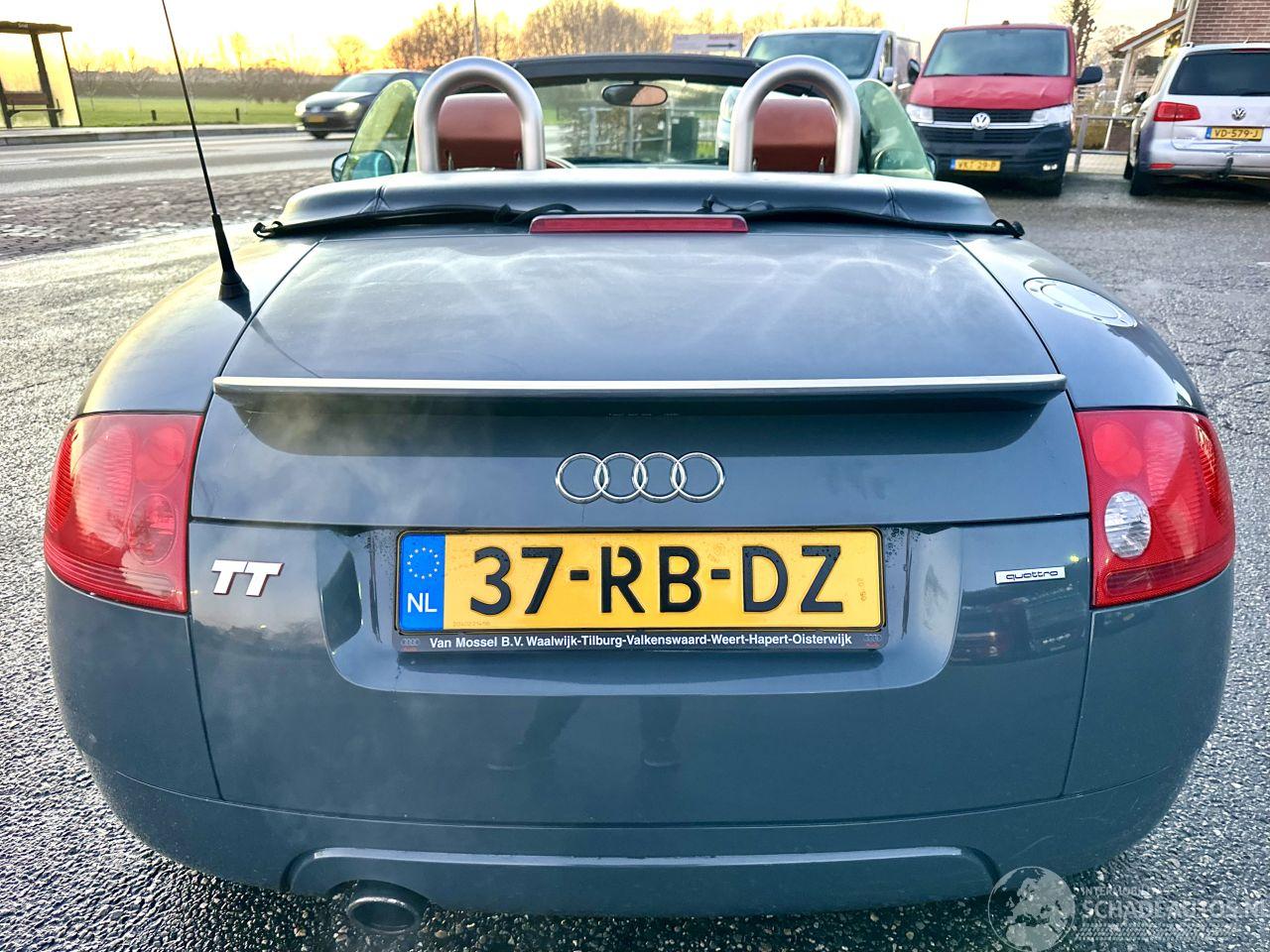 Luxe Audi TT Roadster 1.8 5V Turbo 179pk 6-bak Quattro - compleet historie van A tot Z + complete apk papieren + 3x sleutels op afstandbediening - elektr cabrio dak - bose sound systeem - 4x4 aandrijving - stoelverwarming voor - uniek lederen sportinterieur (speciaal gestikt ) - clima control (digitale airco) - cruise control - lmv - elektr ramen + spiegels - xenon + sproeiers - metallic lak - org radio - 6 versnellingen - ESP etc etc