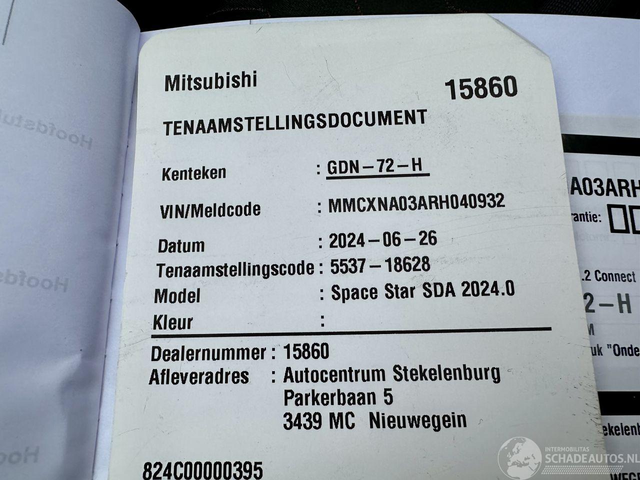 Scherpe meeneemprijs - SPLINTERNIEUWE SPACE-STAR - BTW voertuig - Deze Mitsubishi Space Star 1.2 Connect+ 5drs komt uit 2024 en kostte toen € 19.319 euro. Deze originele Nederlandse personenauto staat sinds 2024 op kenteken