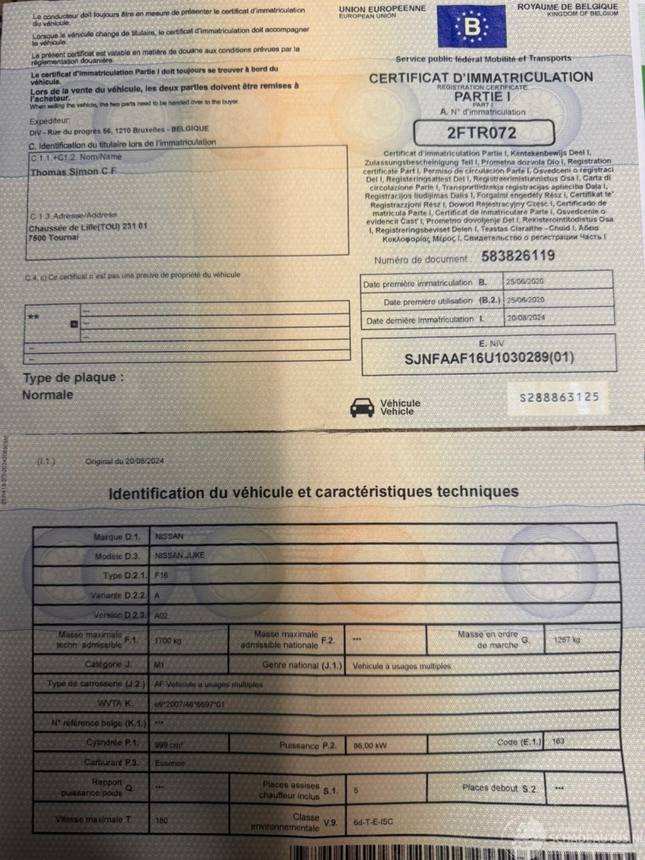 Număr șasiu: SJNFAAF16U103****