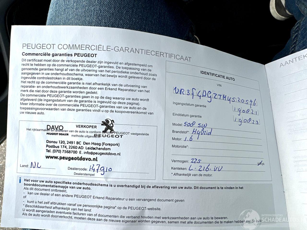 1e Eigenaar - Luxe Peugeot 508SW 1.6 Plug-In HYbrid 8-Traps automaat + F1 BL Lease GT-Line - org NL + 111Dkm NAP + boekjes + 2x sleutels op afstandbed - ZWARTE HEMEL - KEYLESS ENTRY + START - LINE + FRONT + SIDE + PARK ASSIST - SFEERVERLICHTING - KUIPSTOELEN DESIGN LEER + STOELVERW - MEMORY - MASSAGE L+R - orthopedische + elektr voorstoelen - KEYLESS ENTRY + START - MATRIX LED koplampen + achterlichten - PDC V+A - PRIVACY GLASS - SPORTONDERSTEL - SPORTSTUUR + FLIPPERS - NAVI PROF - CAMERA V+A - ELEKTR ACHTERKLEP (ook te bedienen via voet) - 1x laadkabel aanwezig - 2x ledlampjes achter - FOCAL MUZIEK INSTALLATIE + TWEETERS + SUB WOOFER - touchscreen multimediasysteem + 2x usb voor + 2x usb achter + bleutooth + stuurbediening + CarPlay - VIRTUAL COCKPIT - etc etc etc