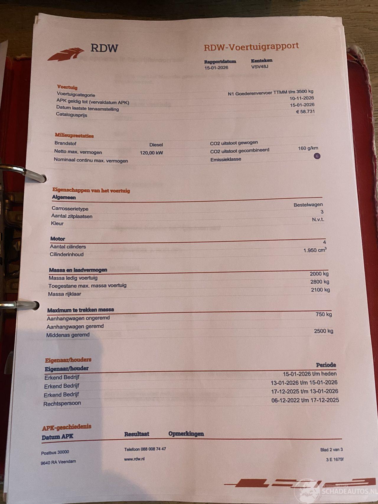 Er is eventueel een kleine video van deze Vito/schade via WhatsApp beschikbaar.