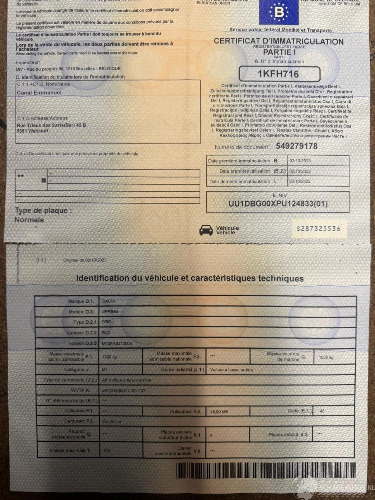 Vehicle identification number: UU1DBG00XPU12****