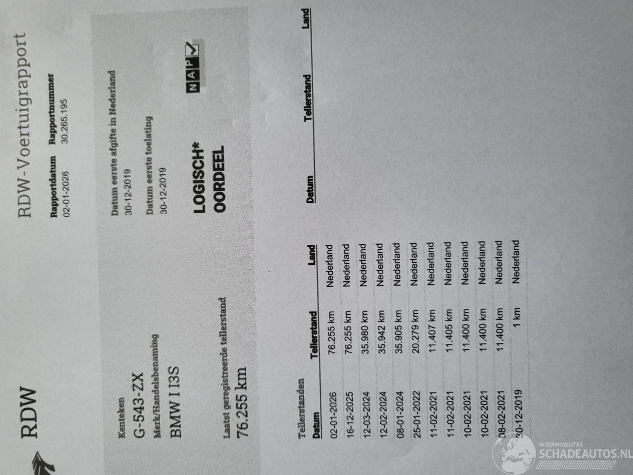 Modelo: I3 I3 S 120Ah 42 KWh RoadStyle Edition 1 Van 1000 Nwprijs € 50000.-