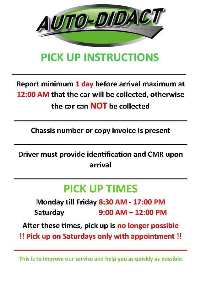 PICK UP INSTRUCTIONS