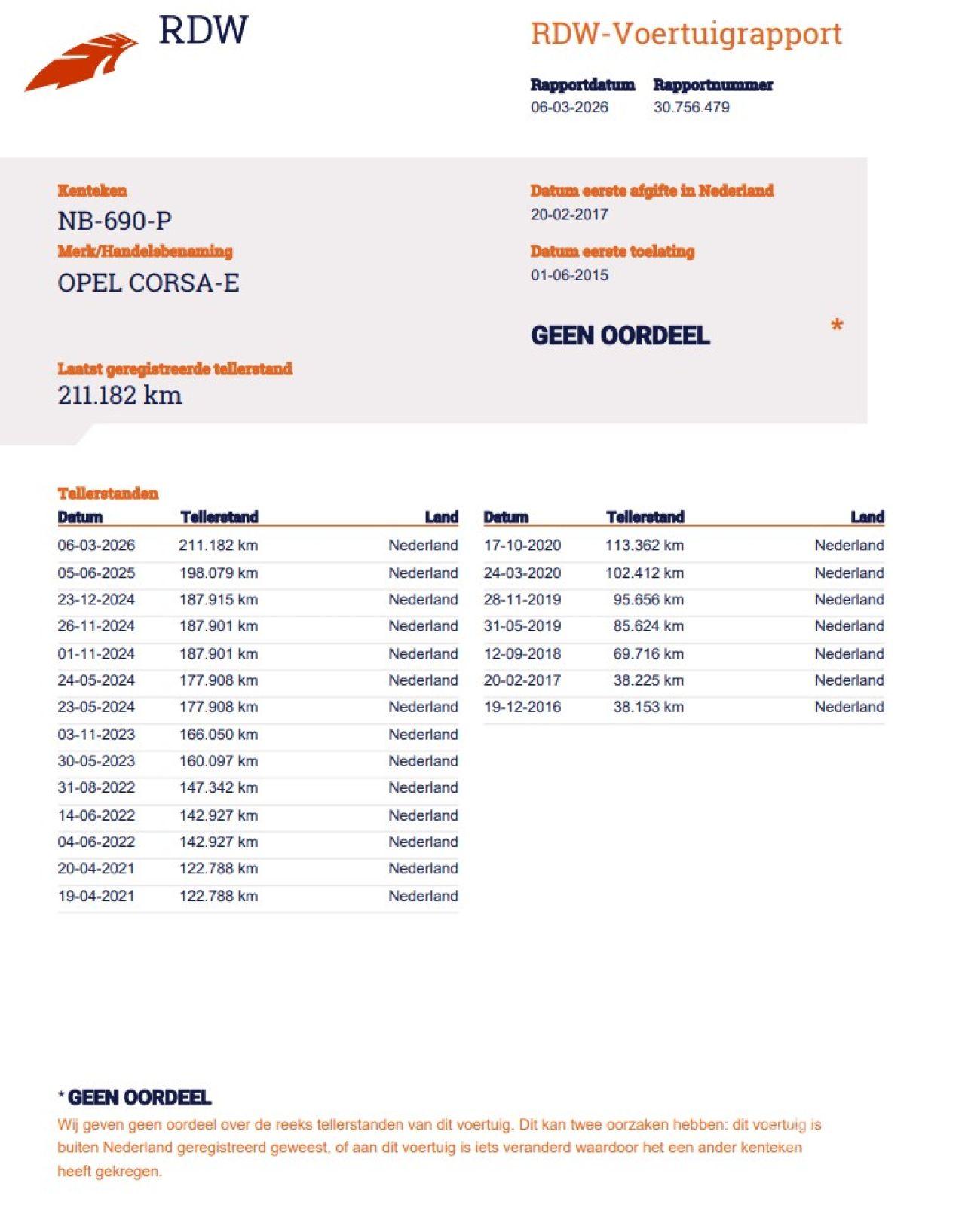 Indication du compteur: 211.182 KM