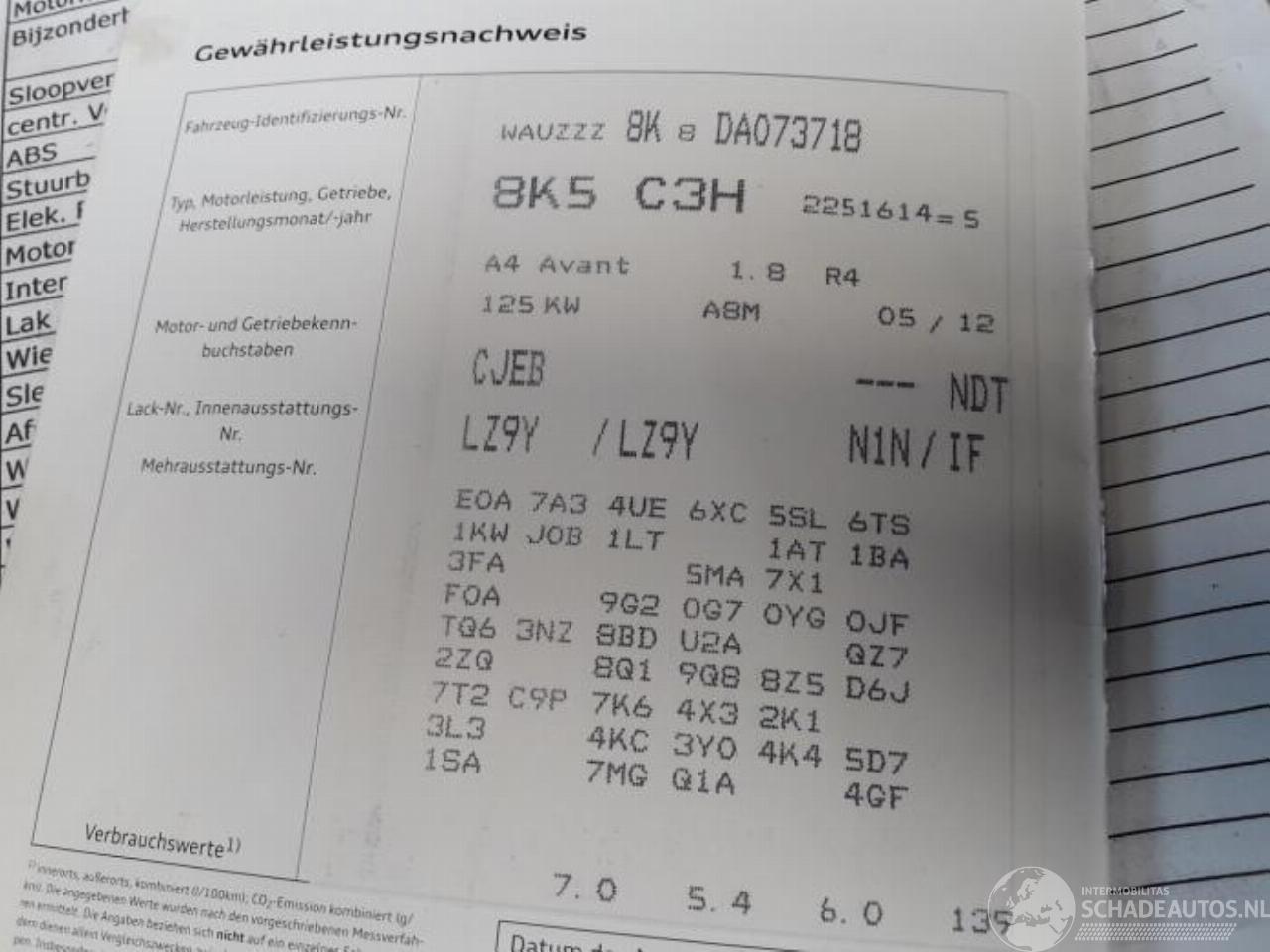 Model: A4 AVANT A4 Avant (B8), Combi, 2007 / 2015 1.8 TFSI 16V
