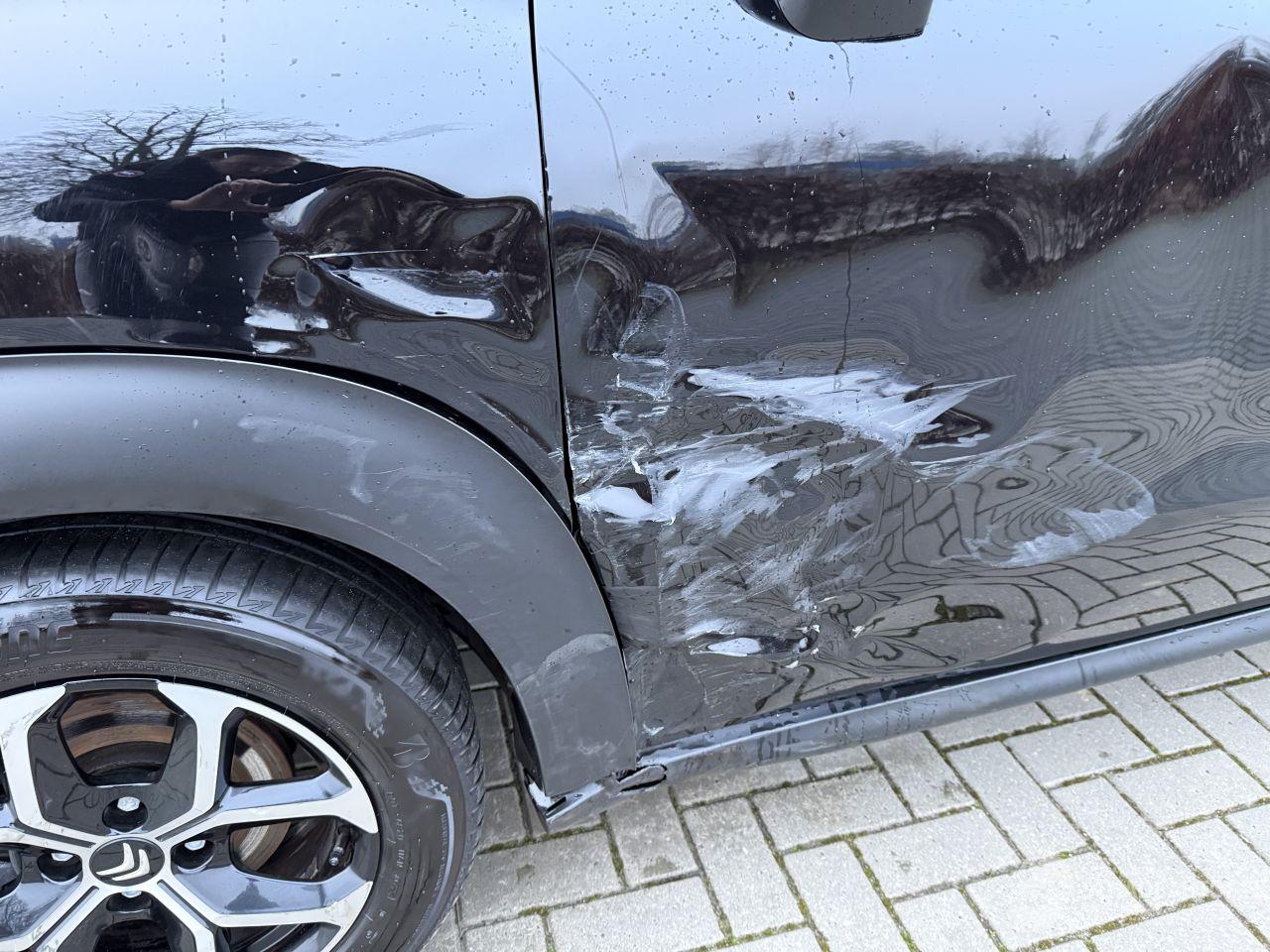 Splinternieuwe auto met een makkelijke schade. Zo rijdbaar!