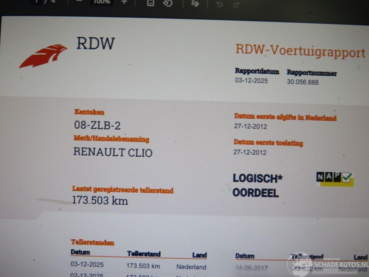 Model: CLIO  0.9 Tce 90pk 5drs Euro 5 Night&Day Navigatie 2012-12